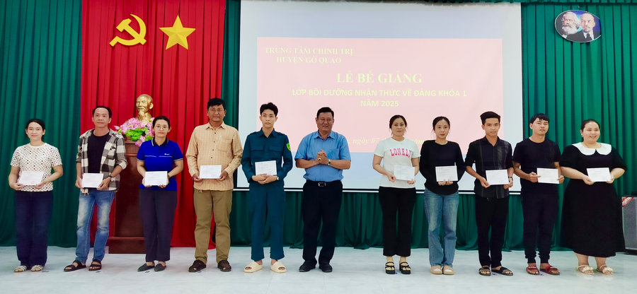 Kết quả có 60/60 học viên hoàn thành lớp bồi dưỡng nhận thức về Đảng khóa 1, năm 2025 và được cấp giấy chứng nhận. Trong đó có 46 học viên đạt loại giỏi; 10 học viên loại khá. Trung tâm Chính trị đã khen thưởng 6 học viên có thành tích tốt trong học tập và rèn luyện.