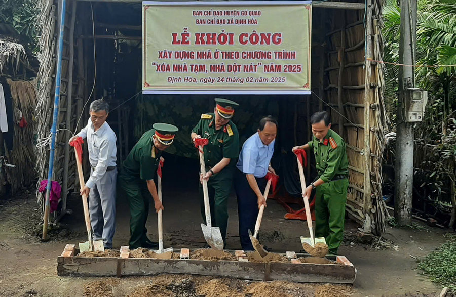 Ảnh: Ban Chỉ đạo tiến hành nghi thức động thổ khởi công xây dựng nhà.