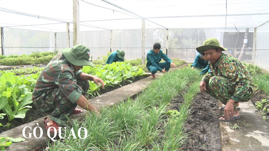 Đến Ban CHQS huyện Gò Quao vào thời điểm này, thấp thoáng phía sau khu doanh trại khang trang là những khu vực tăng gia sản xuất tập trung được quy hoạch chỉnh chu, sạch đẹp. Với bàn tay của các cán bộ, chiến sĩ, từ những mảnh đất kém phì nhiêu, những ao cá bị nhiễm phèn nay đã được cải tạo màu mỡ để nuôi trồng hiệu quả. Tùy theo điều kiện thời tiết các mùa trong năm, đơn vị đã chọn các loại cây phù hợp để canh tác, bổ sung đa dạng khẩu phần bữa ăn. Các cán bộ, chiến sĩ đơn vị cũng thường xuyên nghiên cứu, học tập các mô hình mới như nuôi ba ba, nuôi cua đinh sinh sản, áp dụng tiến bộ kỹ thuật mới vào sản xuất; chú trọng công tác phòng, chống dịch bệnh để đảm bảo đàn gia súc, gia cầm luôn sinh trưởng, phát triển tốt, cho năng suất cao, ổn định.