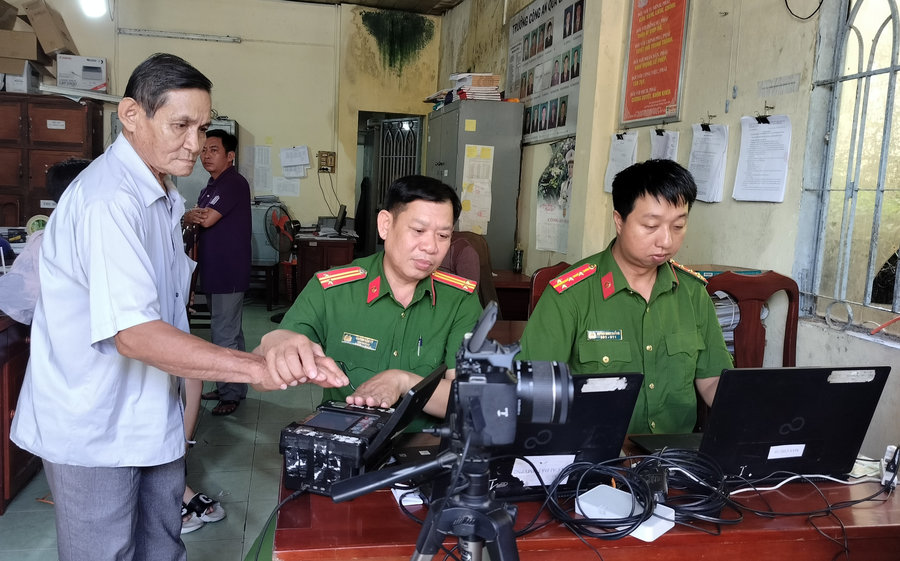 Tổ công tác Công an huyện Gò Quao thu nhận, kích hoạt TKĐDĐT cho công dân tại xã VHHB.