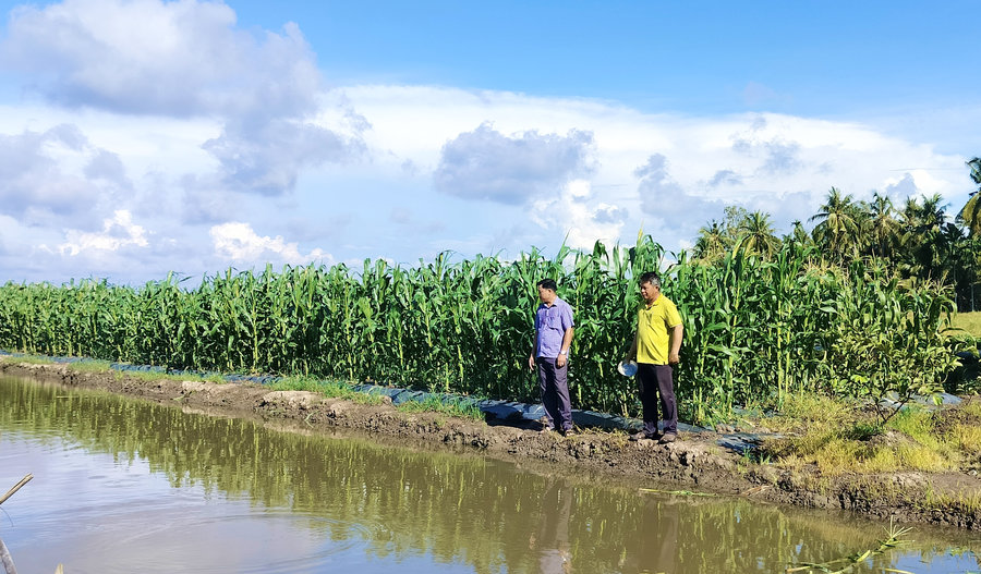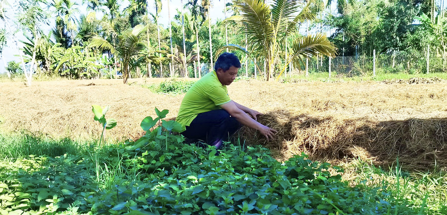 Anh Khỏe chia sẻ: “Do đất vườn của gia đình trước kia bỏ hoang hóa không có canh tác chủ yếu trồng vài bụi chuối, bụi tre... không có thu nhập chỉ sử dụng trong gia đình nên gia đình mới sang lắp chuyển qua trồng lúa hơn 4 năm nay. Do là đất vườn tạp nên thường xuyên ngập mặn, nhiễm phèn trồng lúa hiệu quả không cao, lãi thấp; từ đó tôi đã tìm tòi học tập kinh nghiêm từ các nhà vườn, bạn bè, quyết tâm cải tạo đất vườn tạp hoang hóa và đất trồng lúa nhiều năm bị ngập mặn, nhiễm phèn hiệu quả thấp và mạnh dạn chuyển đổi cơ cấu cây trồng, vật nuôi lên liếp trồng rau sạch, trồng bắp bằng phân bón hữu cơ. Bên cạnh đó, tôi tận dụng mương vườn để thả nuôi các loại cá nước ngọt và nuôi thêm heo, rắn, chim yến để tăng thu nhập gia đình. Ban đầu tôi chỉ trồng thử nghiệm 1000m2 rau xanh do sợ không có thị trường tiêu thụ và chưa có kinh nghiệm, dần dần khi ổn định thị trường tiêu thụ và học hỏi được kinh nghiệm tôi mạnh dạn mở rộng diện tích trồng rau lên 3.500m2, đến nay rau xanh của gia đình được nhiều tiểu thương ở địa phương chọn là địa chỉ thu mua rau tin cậy và bán hàng ngày”.