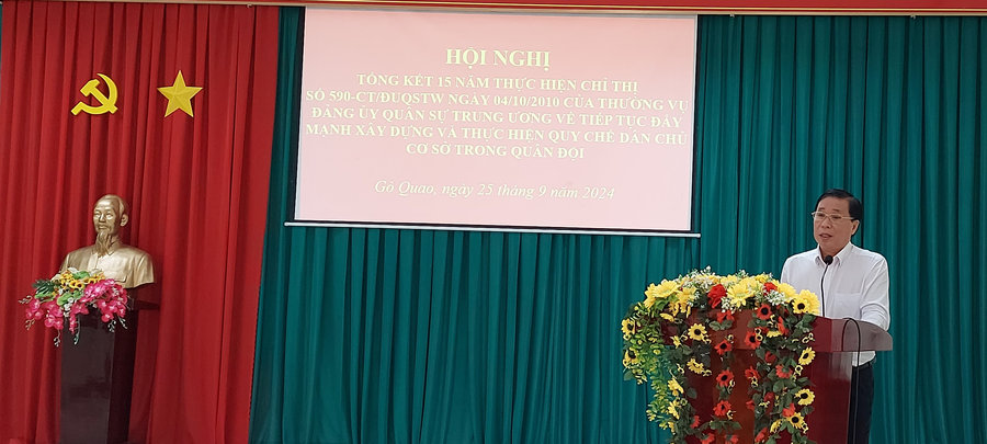 Phát biểu chỉ đạo tại hội nghị, đồng chí Trần Thanh Việt, Tỉnh ủy viên, Bí thư Huyện ủy, Bí thư Đảng ủy quân sự huyện yêu cầu trong thời gian tới, Đảng ủy, Ban Chỉ huy Quân sự huyện, các xã, thị trấn tiếp tục tập trung lãnh đạo quán triệt, tuyên truyền, giáo dục cho cán bộ, chiến sĩ các nghị quyết, chỉ thị, thông tư, hướng dẫn của Quân ủy Trung ương, Bộ Quốc phòng, Tổng cục Chính trị, Quân khu, tỉnh về thực hiện quy chế dân chủ cơ sở; tăng cường sự lãnh đạo của cấp ủy Đảng trong thực hiện quy chế dân chủ ở cơ sở; thường xuyên rà soát, bổ sung các quy chế, quy định trên các mặt hoạt động phù hợp với chức năng, nhiệm vụ của cơ quan, đơn vị; nâng cao chất lượng sinh hoạt đối thoại dân chủ ở các cấp, nhất là đơn vị cơ sở; nâng cao chất lượng hoạt động của Hội đồng quân nhân và các tổ chức quần chúng.