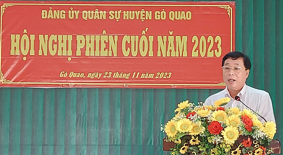 Đồng chí Bí thư huyện ủy cũng yêu cầu cần tăng cường quán triệt, triển khai thực hiện có hiệu quả Nghị quyết Trung ương 4, khóa XIII, về tăng cường xây dựng, chỉnh đốn đảng, gắn với tiếp tục đẩy mạnh việc học tập và làm theo tấm gương đạo đức Hồ Chí Minh”; xây dựng Đảng bộ Quân sự huyện vững mạnh về chính trị, tư tưởng, tổ chức và đạo đức; thực hiện tốt phương hướng, mục tiêu Nghị quyết Đại hội ngay từ đầu nhiệm kỳ. Quan tâm công tác phát triển đảng viên trong lực lượng; nâng cao khả năng sẳn sàng chiến đấu, chủ động ứng phó thắng lợi với mọi tình huống, xây dựng tổ chức Đảng trong sạch, vững mạnh, xây dựng doanh trại, cơ quan đơn vị vững mạnh toàn diện.