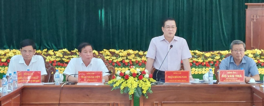 Ảnh: Đ/c Phạm Hoàng Nam (đứng) - Ủy viên Ban Thường vụ, Chủ nhiệm Ủy ban kiểm tra Tỉnh ủy, Trưởng đoàn giám sát phát biểu chỉ đạo.