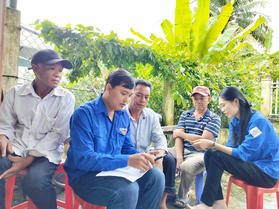 Ảnh: ĐVTN xã Thới Quản tích cực tuyên truyền, giải thích về lợi ích của ứng dụng VNeID đến người dân.