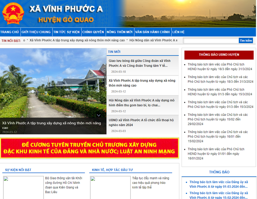 Thiết lập trang thông tin điện tử của Ủy ban nhân dân cấp xã: Hiện tại trên địa bàn huyện có 10/10 xã đã được thiết lập trang thông tin điện tử. Cuối năm 2024 phấn đấu 04/10 trang thông tin điện tử xã hoạt động ổn định, cuối năm 2025 10/10 trang thông tin điện tử hoạt động ổn định. Trang thông tin điện tử của Ủy ban nhân dân cấp xã có chức năng cung cấp thông tin về điều kiện tự nhiên, kinh tế - xã hội; thông tin về các chủ trương, chính sách, văn bản pháp luật mới và các quy định của chính quyền cơ sở, tin tức về các sự kiện, hoạt động nổi bật của cơ sở; có chức năng tìm kiếm, tra cứu, hỏi đáp trực tuyến nhằm đẩy mạnh tương tác giữa người dân với chính quyền cơ sở; liên kết, tích hợp thông tin với Trang thông tin điện tử Ủy ban nhân dân cấp huyện.