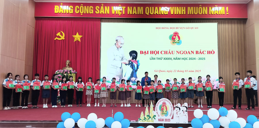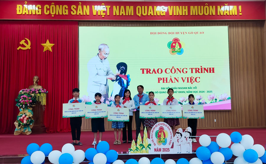 Hội đồng đội huyện trao 7 bảng tượng trưng công trình điểm vui chơi miễn phí cho thiếu nhi từ phong trào kế hoạch nhỏ cho 7 Liên đội trường gồm: Tiểu học Vĩnh Phước A 2, Tiểu học Vĩnh Phước B 2, Tiểu học Thủy Liễu 2, Tiểu học Định An 3, Tiểu học Vĩnh Hòa Hưng Nam 1, Tiểu học Định An 3, Trung học cơ sở Thủy Liễu. Cũng nhân dịp này, Hội đồng đội huyện đã ra mắt đoàn đại biểu huyện dự Đại hội cháu ngoan Bác Hồ tỉnh Kiên Giang lần thứ 19, năm 2025 gồm 8 đại biểu./.