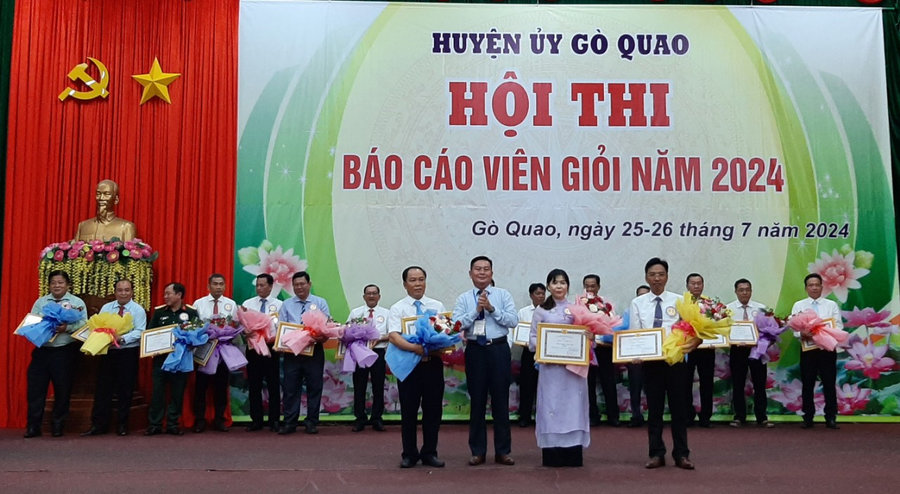 Kết thúc hội thi, Ban Tổ chức đã trao 3 giải A (trong đó 2 giải A cho Chi bộ Tuyên giáo, 01 giải A Đảng bộ xã Định Hòa; trao 4 giải B cho các đơn vị: Chi bộ Giáo dục – đào tạo, Chi bộ Văn hóa Thông tin, Chi bộ Tuyên giáo và Đảng bộ xã Vĩnh Hòa Hưng Nam; trao 5 giải C cho các đơn vị: Chi bộ Kiểm tra, Đảng bộ thị trấn Gò Quao, Chi bộ Tuyên giáo, Đảng bộ y tế, Chi bộ Lao động – Thương binh xã hội và 8 giải khuyến khích./.