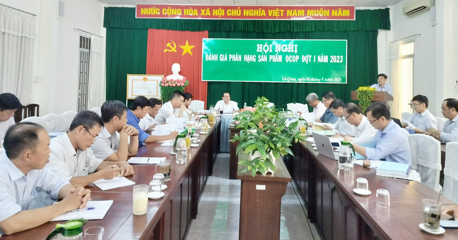 Tham dự có các thành viên Hội đồng đánh giá, phân hạng sản phẩm OCOP huyện; Tổ tư vấn thẩm định nội dung chương trình mỗi xã một sản phẩm (OCOP) huyện Gò Quao; đại diện lãnh đạo UBND các xã và chủ thể các sản phẩm OCOP đăng ký đánh giá.