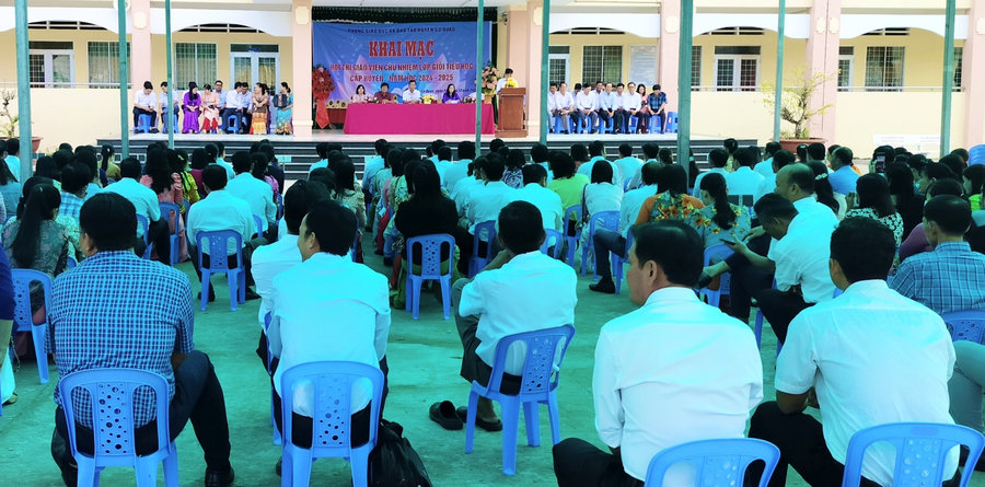 Ảnh: Giáo viên tham gia hội thi Giáo viên chủ nhiệm lớp giỏi Tiểu học cấp huyện, năm học 2024-2025.