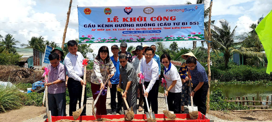 Hội Nông dân tỉnh Kiên Kiang phối hợp UBND huyện Gò Quao tổ chức lễ khởi công xây dựng 2 cầu giao thông nông thôn Từ Bi 54 và Từ Bi 55 tại hai xã Vĩnh Phước A và Thủy Liễu.