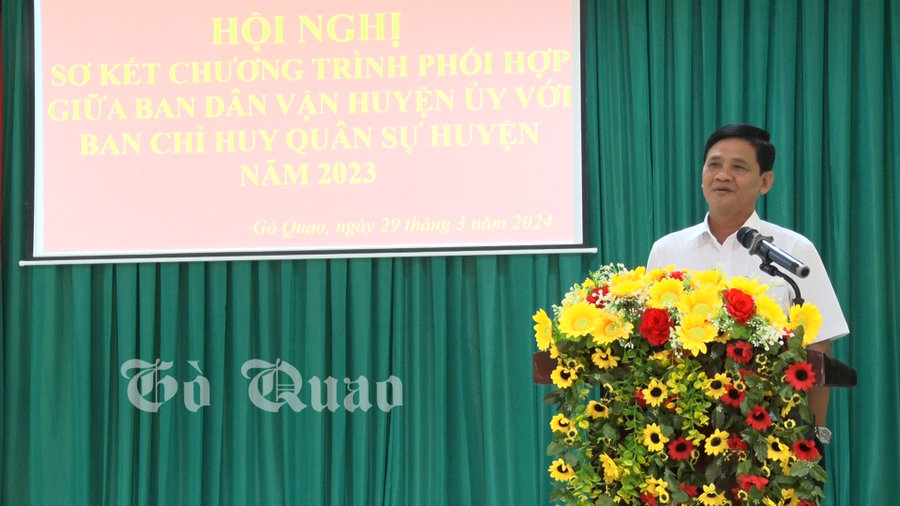 Phát biểu chỉ đạo tại hội nghị Đồng chí Nguyễn Xuân Hoài, Phó bí thư Thường trực huyện ủy, Chủ tịch HĐND huyện đề nghị Ban Dân vận Huyện ủy, Ban chỉ huy Quân sự huyện tiếp tục tuyên truyền, vận động cán bộ, chiến sĩ, Nhân dân chấp hành tốt chủ trương, chính sách, pháp luật của Đảng, Nhà nước; không ngừng củng cố, xây dựng tổ chức cơ sở vững mạnh, xây dựng nền quốc phòng toàn dân, an ninh nhân dân; phối hợp thực hiện có hiệu quả công tác dân vận gắn với chính sách đền ơn đáp nghĩa, chính sách hậu phương quân đội; tích cực tham gia cuộc vận động “Toàn dân đoàn kết xây dựng nông thôn mới, đô thị văn minh”, phong trào toàn dân bảo vệ an ninh Tổ quốc gắn với đẩy mạnh “Học tập và làm theo tư tưởng, đạo đức, phong cách Hồ Chí Minh”.