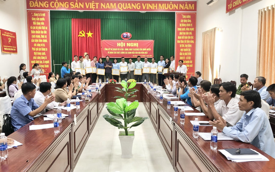 Nhân dịp tổng kết thực hiện Kế hoạch số 70/KH-UBND ngày 02/6/2021. Ủy ban nhân dân huyện khen thưởng cho 03 tập thể và 06 cá nhân có thành tích xuất sắc trong tổ chức triển khai thực hiện kế hoạch nâng cao chất lượng các danh hiệu văn hóa giai đoạn 2021-2025./.