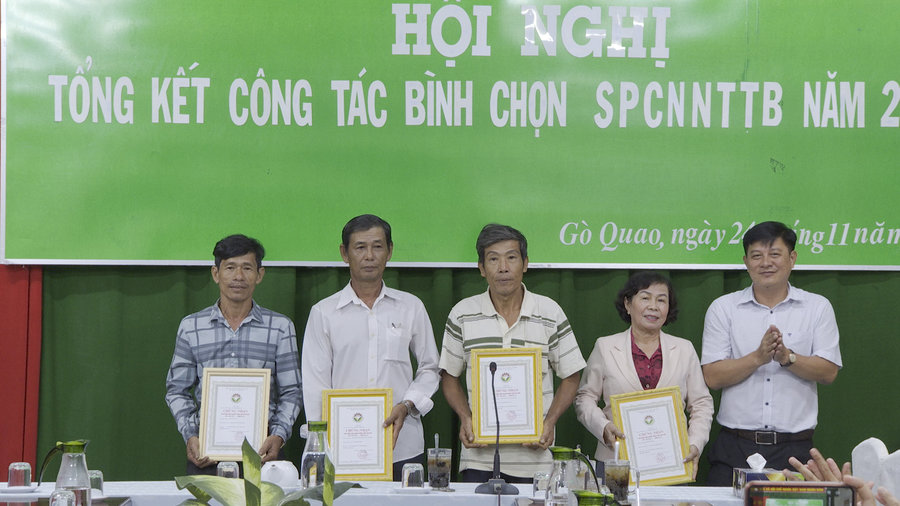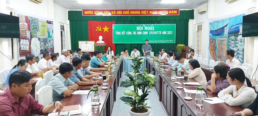 Tham gia bình chọn sản phẩm công nghiệp nông thôn tiêu biểu cấp huyện lần thứ 5 năm 2023 có 41 sản phẩm công nghiệp của 18 cơ sở, doanh nghiệp, Tổ hợp tác, hợp tác xã trên địa bàn huyện bao gồm các nhóm sản phẩm như: Nhóm sản phẩm thủ công mỹ nghệ: 11 sản phẩm; Nhóm sản phẩm chế biến nông, lâm, thủy sản và thực phẩm: 26 sản phẩm; Nhóm sản phẩm thiết bị, máy móc, dụng cụ và phụ tùng cơ khí: 4 sản phẩm. Kết quả Hội đồng và Ban giám khảo bình chọn sản phẩm công nghiệp nông thôn tiêu biểu cấp huyện năm 2023 đã chấm điểm bình chọn sản phẩm, kết quả có 34/41 sản phẩm đạt sản phẩm công nghiệp nông thôn tiêu biểu cấp huyện lần thứ 5 năm 2023. Đồng thời chọn 18 sản phẩm đạt cấp huyện để tham dự bình chọn cấp tỉnh. Ngoài ra, huyện trao chứng nhận có 3 sản phẩm đạt OCOP 3 sao gồm: Sản phẩm Dưa Bồn bồn, bồn bồn tươi của hộ kinh doanh Dương Được, ấp Thới Trung, xã Thới Quản; Sản phẩm Măng cụt trái của Hợp tác xã DVNN Vĩnh Hùng, ấp 5, xã Vĩnh Hoà Hưng Bắc. Lũy kế đến nay, toàn huyện có 30 sản phẩm đã được công nhận OCOP 03 sao với 15 chủ thể tham gia.