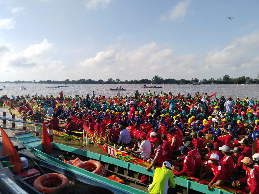 Ảnh: Đông đảo vận động viên tham gia thi đấu giải đua ghe ngo tại Ngày hội Văn hóa, Thể thao và Du lịch đồng bào Khmer tỉnh Kiên Giang lần thứ XVI năm 2024.