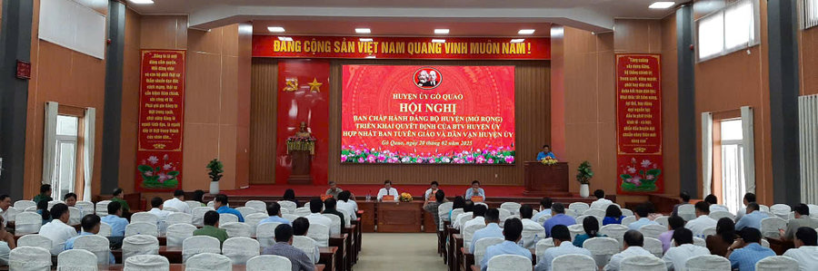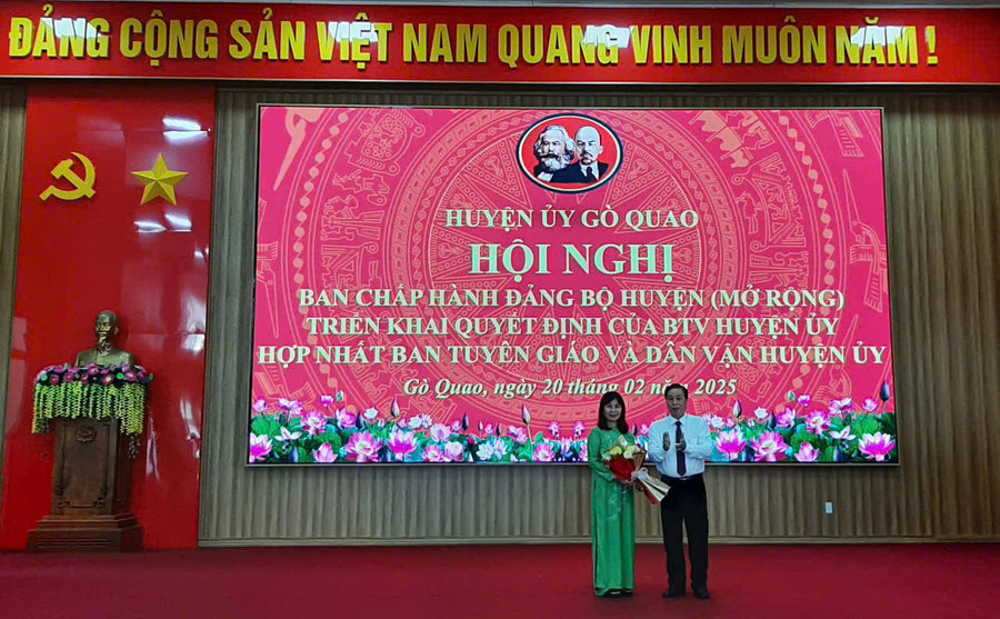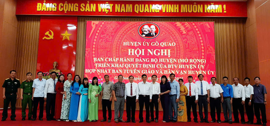 Tại hội nghị, Ban Thường vụ Huyện ủy Gò Quao công bố các quyết định, gồm: Hợp nhất Ban Tuyên giáo Huyện ủy và Ban Dân vận Huyện ủy thành Ban Tuyên giáo và Dân vận Huyện ủy; bổ nhiệm đồng chí Phạm Thị Hòa - Ủy viên Ban Thường vụ Huyện ủy giữ chức Trưởng Ban Tuyên giáo và Dân vận Huyện ủy, đồng thời phân công giữ chức vụ Giám đốc Trung tâm Chính trị huyện Gò Quao. Bổ nhiệm các đồng chí: Danh Quốc Thông – Huyện ủy viên, Phó Trưởng Ban Tuyên giáo Huyện ủy, Nguyễn Xuân Hòa - Phó Trưởng Ban Tuyên giáo Huyện ủy, Dương Hoàng Sơn – Phó Trưởng Ban Dân vận Huyện ủy giữ chức Phó Trưởng Ban Tuyên giáo và Dân vận Huyện ủy.