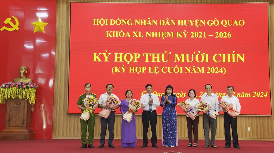 Ông Nguyễn Xuân Hoài, Phó Bí thư Thường trực Huyện ủy, Chủ tịch Hội đồng nhân dân huyện; bà Dương Kim Hơn, Ủy viên Thường vụ, PCT Hội đồng nhân dân huyện chủ trì kỳ họp. Đến dự kỳ họp có ông Trần Thanh Việt, Tỉnh ủy viên, Bí thư Huyện ủy; ông Trương Minh Khiêm, Phó Bí thư Huyện ủy; ông Võ Văn Trà, phó Bí thư Huyện ủy, Chủ tịch UBND huyện.