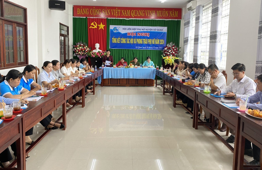 Năm 2024, các cấp Hội Phụ nữ huyện Gò Quao đã tập trung xây dựng cơ sở Hội vững mạnh, triển khai thực hiện có hiệu quả phong trào thi đua, cuộc vận động và các nhiệm vụ trọng tâm của Hội. Trong đó, nổi bật là phát động nhiều công trình, phần việc thực hiện phong trào tham gia xây dựng nông thôn mới, nông thôn mới nâng cao, phát triển kinh tế. Các cấp Hội tổ chức tốt các hoạt động tuyên truyền, giáo dục chính trị, nâng cao kiến thức, kỹ năng cho cán bộ, hội viên, phụ nữ; triển khai thực hiện phong trào thi đua “Xây dựng người phụ nữ Việt Nam thời đại mới" đến 100% cán bộ, hội viên phụ nữ; gắn với học tập và làm theo tư tưởng, đạo đức, phong cách Hồ Chí Minh. Tiếp tục chỉ đạo cơ sở thực hiện cuộc vận động “Xây dựng gia đình 5 không, 3 sạch” gắn với việc thực hiện “xây dựng nông thôn mới, đô thị văn minh”. Năm 2024, có 195 hộ mới đạt 8 tiêu chí gia đình 5 không, 3 sạch, nâng tổng số đến nay toàn huyện có 26. 346 hộ đạt 8 tiêu chí xây dựng gia đình 5 không 3 sạch. Hoạt động hỗ trợ phụ nữ giảm nghèo, phát triển kinh tế được các cấp Hội quan tâm, triển khai thực hiện tốt; tiếp tục duy trì có hiệu quả nguồn vốn vay Ngân hàng Chính sách xã hội, giải quyết cho hội viên vay phát triển sản xuất với dư nợ trên 126 tỷ đồng; phối hợp mở 16 lớp nghề phi nông nghiệp cho lao động nữ nông thôn và các lớp chuyển giao khoa học kỹ thuật cho 555 hội viên phụ nữ. Vạn động xây dựng 15 căn nhà “Mái ấm tình thương” cho hội viên phụ nữ có hoàn cảnh đặc biệt khó khăn về nhà ở với tổng trị giá trên 700 triệu đồng. Tiếp tục hưởng ứng chương trình “Mẹ đỡ đầu", kết nối đỡ đầu 27 cháu học sinh mồ côi có hoàn cảnh đặc biệt khó khăn với tổng kinh phí trên 122 triệu đồng. Thực hiện Chương trình “Triệu phần quà san sẻ yêu thương” Hội hối hợp Hội LHPN tỉnh thăm tặng 200 xuất quà cho hội viên phụ nữ khó khăn tại 2 xã: Vĩnh Hòa Hưng Nam và Vĩnh Hòa Hưng Bắc; vận động các mạnh thường quân hỗ trợ cho hộ nghèo, hộ khó khăn, người già neo đơn, hội viên phụ nữ, trẻ em có hoàn cảnh khó khăn được 2.000 suất quà, tổng trị giá trên 02 tỷ đồng. Phối hợp vận động mạnh thường quân duy trì hỗ trợ 86 địa chỉ neo đơn, già yếu, bệnh tật.