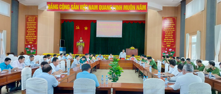 Phát biểu tại buổi làm việc, đồng chí Nguyễn Thanh Long – Tỉnh ủy viên, Phó Trưởng Ban dân vận Tỉnh ủy đã ghi nhận, đánh giá cao những kết quả mà huyện Gò Quao đã đạt được trong thực hiện Nghị quyết số 11-NQ/TU, ngày 14-6-2021 của Tỉnh ủy về tăng cường các biện pháp đấu tranh phòng, chống tội phạm và giải quyết tệ nạn xã hội. Cho thấy Nghị quyết số 11 đã từng bước đi vào cuộc sống. Đồng thời, đồng chí cũng đề nghị thời gian tới, Huyện ủy Gò Quao cần tiếp tục tập trung lãnh đạo thực hiện Nghị quyết số 11 của Tỉnh ủy gắn với Chỉ thị số 48- CT/TW ngày 22-10-2010 của Bộ Chính trị về “Tăng cường sự lãnh đạo của Đảng đối với công tác phòng, chống tội phạm trong tình hình mới”.