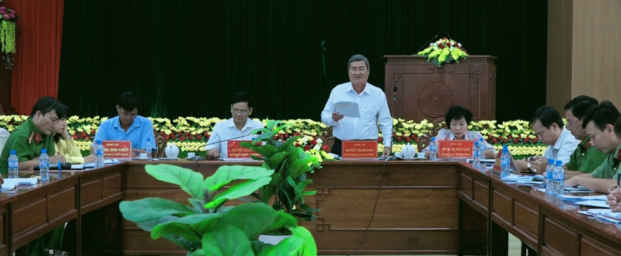 Ảnh: Đồng chí Nguyễn Thanh Long (đứng) – Tỉnh ủy viên, Phó Trưởng Ban dân vận Tỉnh ủy phát biểu tại buổi làm việc.