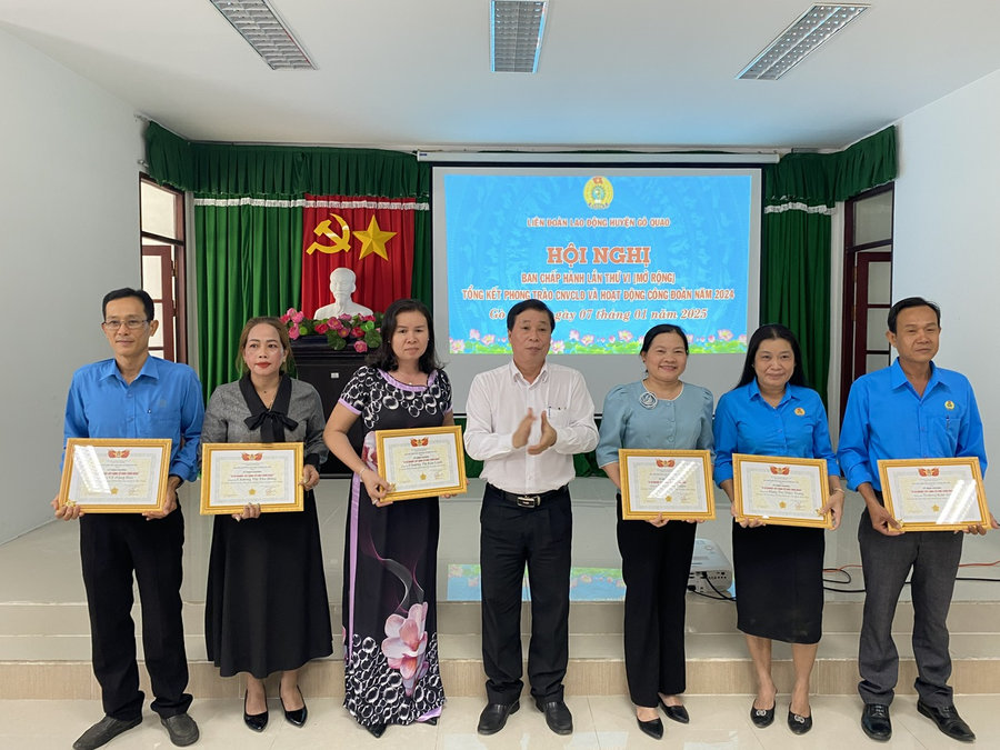 Dịp này, Tổng Liên đoàn Lao động Việt Nam đã trao tặng kỷ niệm chương “Vì sự nghiệp xây dựng tổ chức công đoàn” cho 10 cá nhân; LĐLĐ tỉnh tặng bằng khen cho 5 tâp thể và 17 cá nhân; Liên đoàn Lao động huyện tặng giấy khen cho 10 tập thể và 8 cá nhân có thành tích xuất sắc trong hoạt động công đoàn năm học 2023 – 2024./.