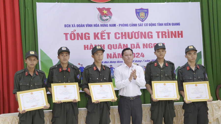 Dịp này, UBND huyện Gò Quao tặng giấy khen 5 cá nhân, UBND xã Vĩnh Hòa Hưng Nam tặng giấy khen 22 cán bộ chiến sĩ có thành tích tốt trong đợt hành quân dã ngoại./.