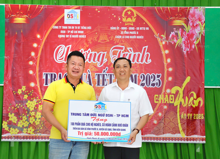 Theo ông Nguyễn Văn Tâm, Chủ tịch UBND xã Vĩnh Phước B, những món quà Tết được trao là thông điệp nhân ái, nghĩa tình của Trung tâm Đức ngữ DSHi – TP HCM chung tay, góp sức chăm lo Tết cho người nghèo, người có hoàn cảnh khó khăn, giúp những hoàn cảnh kém may mắn có một cái Tết thật vui vẻ, đầm ấm và tràn đầy yêu thương.