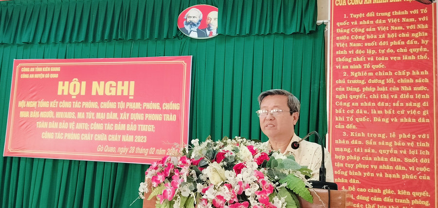 Trong năm 2024, đồng chí Võ Văn Trà đề nghị các ngành, các cấp, lực lượng công an tiếp tục triển khai thực hiện có hiệu quả các chủ trương, chính sách của Đảng, pháp luật của Nhà nước về phòng, chống tội phạm; phòng, chống mua bán người, HIV/AIDS, ma tuý, mại dâm và phong trào toàn dân bảo vệ an ninh Tổ quốc.