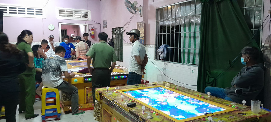 Ảnh: Đội 814 huyện kiểm tra, lập biên bản hoạt động game bắn cá quá giờ quy định.