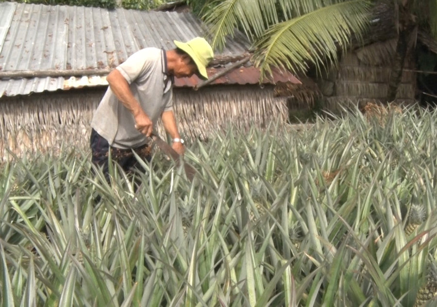 Ảnh: Ông Trần Thanh Hồng - ấp Tạ Quang Tỷ, xã Vĩnh Hoà Hưng Nam, thu hoạch khóm.