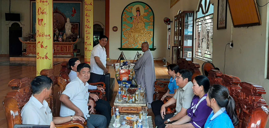 Đoàn đã đến thăm chùa Bữu Quang, đồng chí Trương Minh Khiêm, Phó Bí thư Huyện ủy đã trao quà và gửi lời chúc đến Ban quản trị chùa và tăng ni, bà con phật tử một mùa lễ Rằm tháng Giêng an lành, hạnh phúc; và mong muốn các cơ sở Phật giáo tiếp tục đồng hành cùng chính quyền địa phương trong công tác an sinh xã hội, phát huy những giá trị văn hóa, đạo đức tốt đẹp của Phật giáo trong đời sống cộng đồng, góp phần xây dựng xã Vĩnh Hòa Hưng Nam ngày càng phát triển giàu đẹp, văn minh.