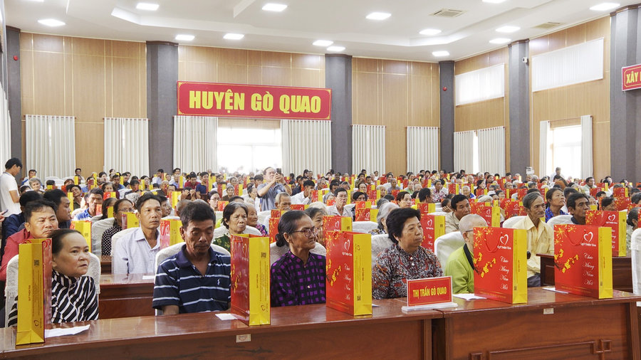 Trước thềm năm mới xuân Ất Tỵ 2025, 500 người dân là hộ nghèo, hộ có hoàn cảnh khó khăn tại huyện Gò Quao được nhận quà, mỗi phần quà trị giá 600.000 đồng. Đây là hoạt động ý nghĩa phát huy truyền thống "Tương thân, tương ái", "Lá lành đùm lá rách" của dân tộc, góp phần sẻ chia khó khăn để người nghèo, hoàn cảnh khó khăn có điều kiện vui Xuân, đón Tết.