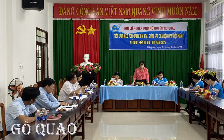 Tại buổi làm việc Hội LHPN huyện Gò Quao đã báo cáo kết quả thực hiện Đề án 1893 “Bồi dưỡng cán bộ, công chức Hội LHPN các cấp và Chi hội trưởng Phụ nữ giai đoạn 2019 - 2025”. Theo đó từ đầu năm đến nay Hội LHPN huyện Gò Quao đã phối hợp với Ban Tổ chức Huyện ủy, Phòng Nội vụ, Trung tâm chính trị huyện tổ chức đào tạo, bồi dưỡng nghiệp vụ cho cán bộ Hội hai cấp. Năm 2024 đã mở 01 lớp bồi dưỡng nghiệp vụ công tác Hội tại huyện cho 90 học viên là Chi Hội trưởng, Chi Hội phó, Tổ trưởng, Tổ phó phụ nữ dự. Bên cạnh đó, Hội đã phối hợp với Trung tâm chính trị huyện mở 10 lớp đào tạo, bồi dưỡng cho cán bộ Hội như: Sơ cấp chính trị, bồi dưỡng kiến thức mới, kiến thức Quốc phòng, đảng viên mới, có 535 học viên, trong đó cán bộ Hội 134 chị.