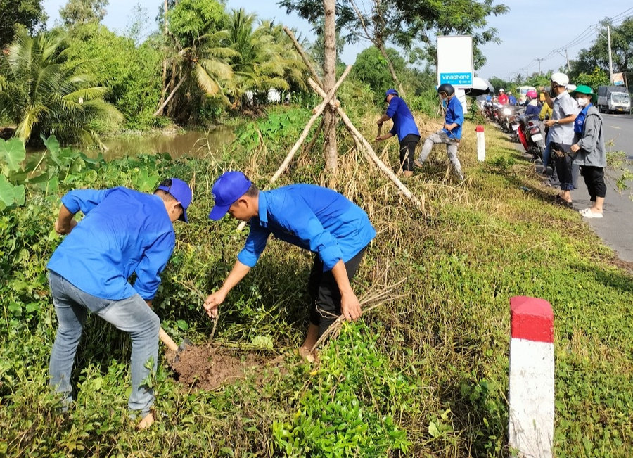 Từ đầu năm đến nay tuổi trẻ huyện nhà đã ra quân phát hoang và be lề lộ đường giao thông nông thôn trên 10km, trồng hoa, cây xanh trên 4km tuyến lộ giao thông nông thôn. Duy tu, bảo dưỡng các công trình thắp sáng đường quê với chiều dài 3.000m, tuyên truyền vận động người dân bảo vệ môi trường, thu gom rác thải. Chỉ đạo 11/11 cơ sở Đoàn đồng loạt ra quân tổ chức “Ngày Chủ nhật xanh” lần thứ I năm 2023. Qua đó đã tổ chức các hoạt động vệ sinh môi trường, tuyên truyền người dân thu gom, đổi rác thải nhựa, tổ chức phát quang đường giao thông nông thôn, trồng cây xanh, tổ chức gian hàng 0 đồng... Kết quả thực hiện mới là 6 mô hình vườn ươm cây xanh; trồng mới gần 2000 cây xanh; tổ chức đổi rác thải nhựa cho bà con trên 250 kg thải nhưạ, tổ chức vệ sinh các tuyến đường thanh niên tự quản; phát hoang các tuyến đường trên 10km hoạt động thu hút đông đảo ĐVTN và người dân tham gia. Đặc biệt tuổi trẻ huyện nhà đang tích cực thực hiện các hoạt động của Chiến dịch thanh niên tình nguyện hè năm 2023 để góp phần cùng cấp ủy, chính quyền xây dựng nông thôn mới, nông thôn mới nâng cao.