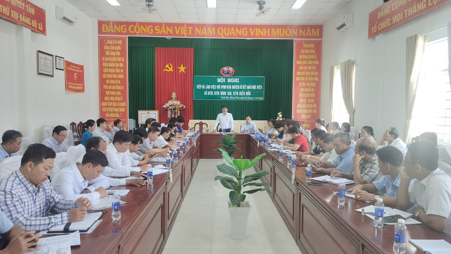 Phát biểu kết luận buổi làm việc, đồng chí Trang Hồng Nghĩa, Phó Chủ tịch UBND, Chánh Văn phòng Điều phối nông thôn mới huyện yêu cầu xã Vĩnh Hòa Hưng Nam tiếp tục huy động sức mạnh cả hệ thống chính trị tiếp tục tập trung xây dựng nông thôn mới nâng cao, nông thôn mới kiểu mẫu, xem đây là nhiệm vụ trọng tâm, xuyên suốt. Tiếp tục duy trì và nâng cao chất lượng các tiêu chí đã đạt. Đẩy mạnh công tác tuyên truyền về chủ trương, mục đích, ý nghĩa xây dựng nông thôn mới, nông thôn mới nâng cao, nông thôn mới kiểu mẫu; tiếp tục huy động các nguồn lực và vận động nhân dân tham gia xây dựng hoàn thiện cơ sở hạ tầng về giao thông, giáo dục, văn hóa, y tế, môi trường,... tạo điều kiện để phát triển sản xuất, giảm nghèo bền vững và nâng cao thu nhập của người dân. Trong đó đặc biệt chú trọng, quan tâm thực hiện tiêu chí Y tế, tập trung tuyên truyền, vận động người dân tham gia bảo hiểm y tế để đạt chỉ tiêu theo quy định xã nông thôn mới nâng cao.