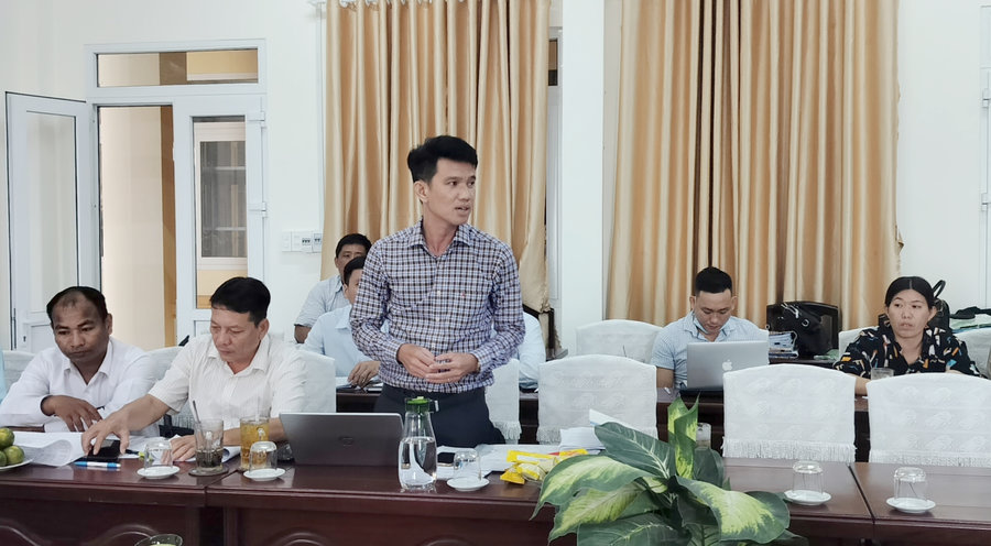 Ảnh: Đại diện Sở Thông tin truyền thông phát biểu tại buổi làm việc về việc thực hiện tiêu chí Thông tin và truyền thông trong xây dựng nông thôn mới nâng cao của các xã.