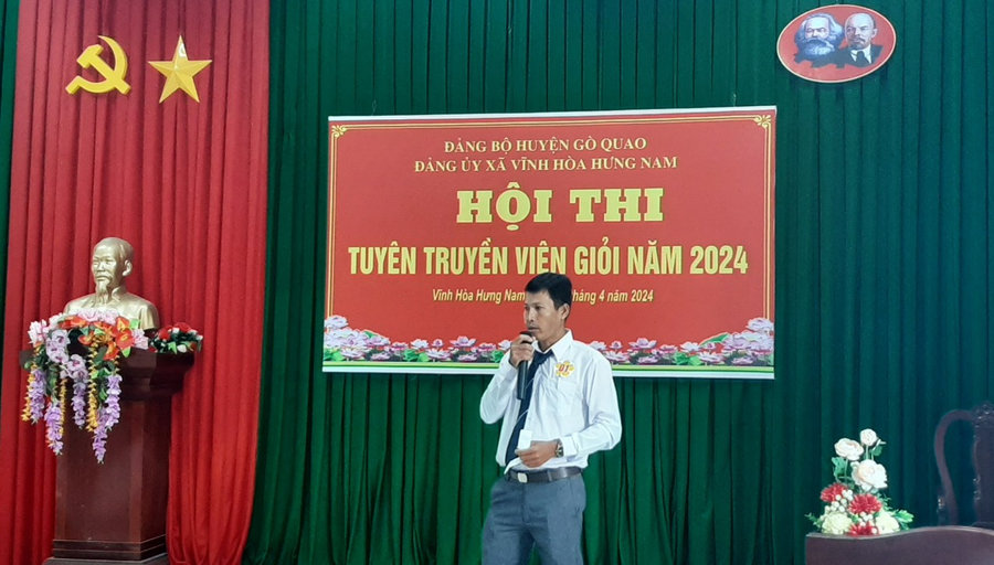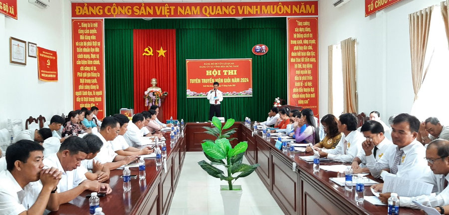 Tham gia hội thi có 18 thí sinh; trong đó tuyên truyền viên của xã 6 thí sinh, 12 thí sinh là Bí thư, Phó Bí thư chi bộ ấp. Các thí sinh trải qua 03 phần thi: Soạn đề cương; Thuyết trình: Thí sinh lựa chọn phần trọng tâm trong chuyên đề đã đăng ký dự thi hoặc toàn bộ nội dung chuyên đề đã chuẩn bị để trình bày trong thời gian từ 08 - 10 phút; Trả lời câu hỏi của Ban giám khảo: Nội dung các câu hỏi liên quan trực tiếp tới bài thuyết trình và có mở rộng để kiểm tra kiến thức có liên quan, kỹ năng của tuyên truyền viên. Phần này thí sinh trả lời không quá 03 phút.