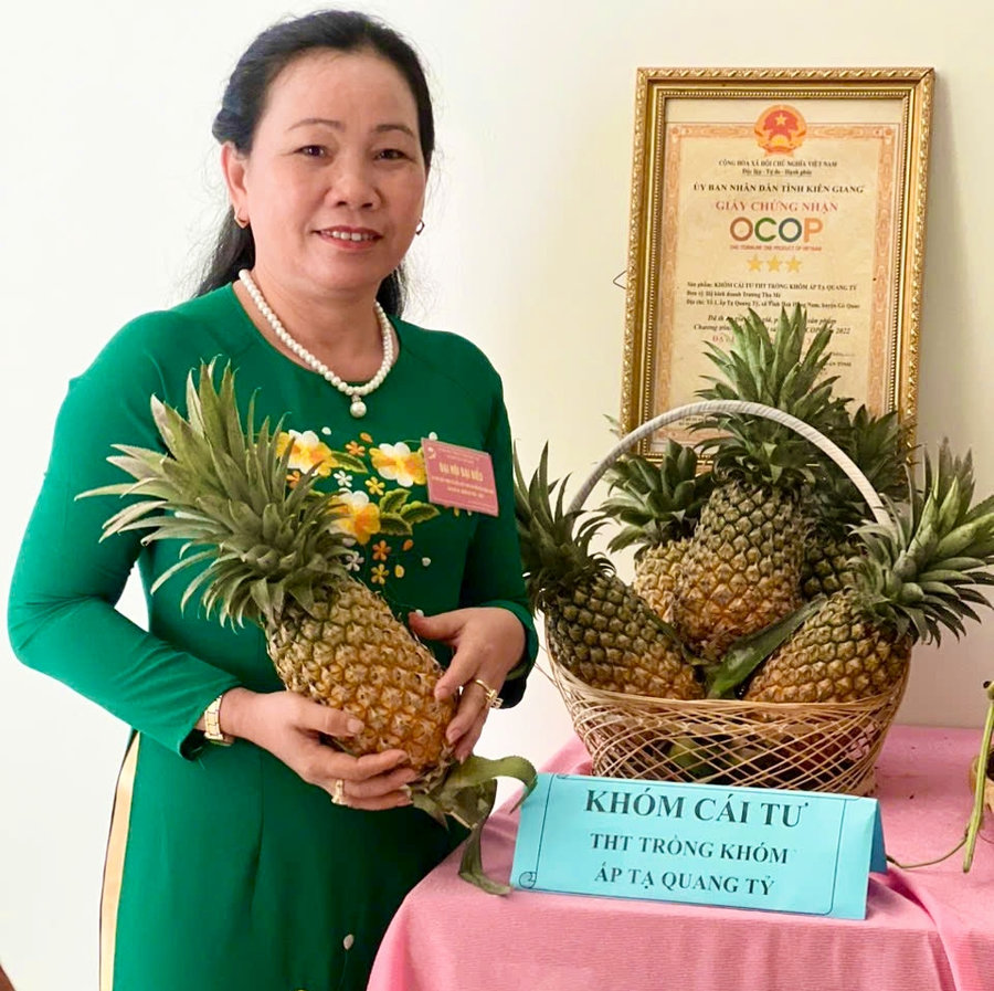 Ảnh: Sản phẩm Khóm Cái Tư của Tổ hợp tác trồng khóm ấp Tạ Quang Tỷ đạt chuẩn OCOP 3 sao.