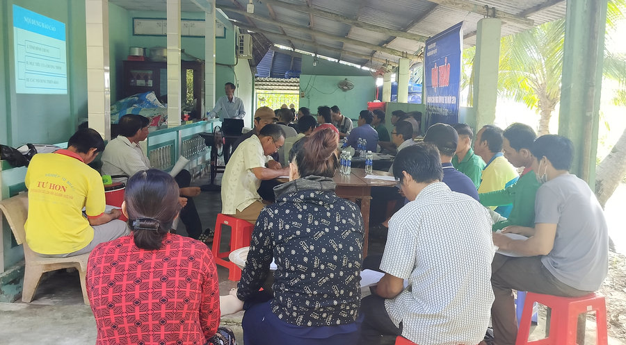 Ảnh: Tăng cường chuyển giao tiến bộ khoa học kỹ thuật cho nông dân trong sản xuất nông nghiệp và vận động người dân nhân rộng các mô hình làm ăn hiệu quả là một trong những giải pháp của Vĩnh Hòa Hưng Nam nhằm nâng cao thu nhập bình quân đầu người theo quy định xã NTM kiểu mẫu. Trong ảnh: Một buổi hội thảo về xây dựng mô hình cánh đồng lớn chuyên canh lúa chất lượng cao, nâng cao hiệu quả sản xuất, bảo vệ môi trường, thích ứng biến đổi khí hậu vụ Hè Thu năm 2024 tại ấp Vĩnh Hòa 4, xã Vĩnh Hòa Hưng Nam.