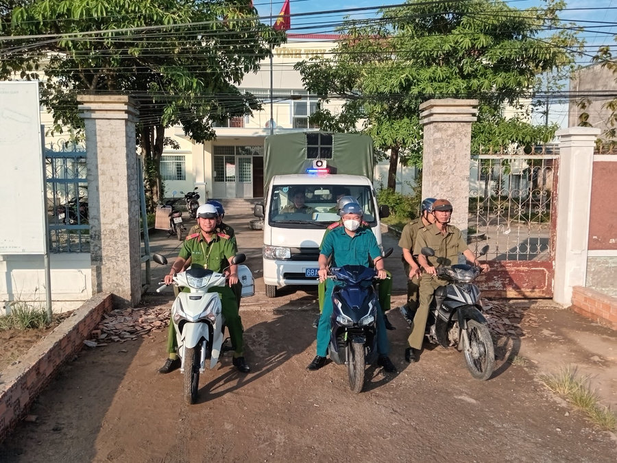 Ảnh: Lực lượng Công an xã Vĩnh Tuy phối hợp ra quân cao điểm đảm bảo an ninh, trật tự Tết Nguyên đán Giáp Thìn 2024 trên địa bàn xã.