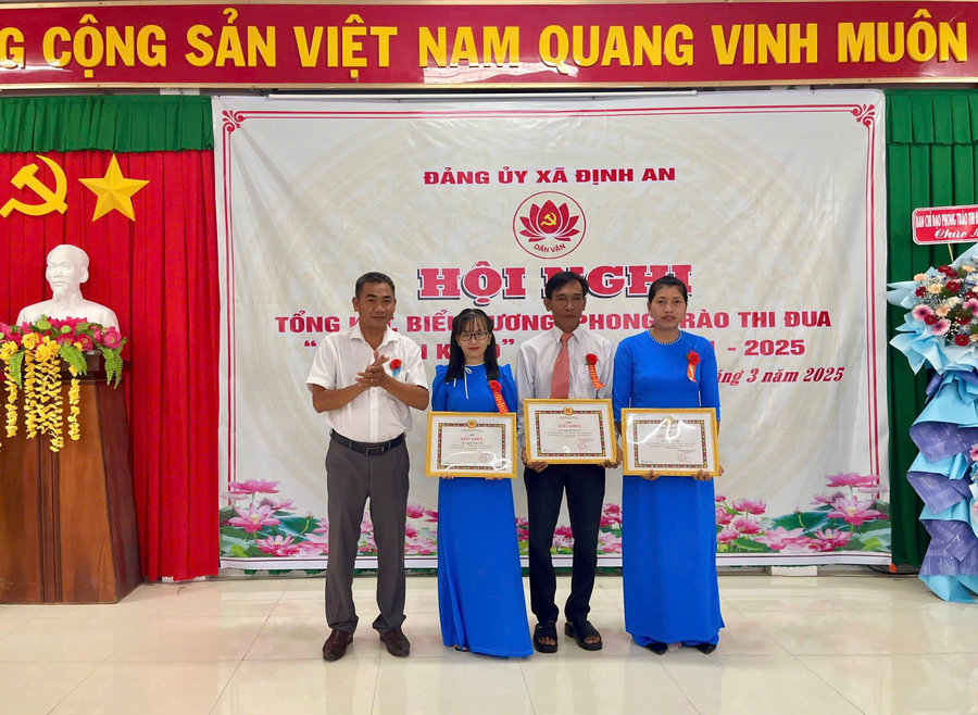 Dịp này, Ban Chỉ đạo Phong trào thi đua “Dân vận khéo” xã Định An trao Giấy chứng nhận công nhận 38 mô hình, điển hình “Dân vận khéo” giai đoạn 2021-2025. Ủy ban nhân dân xã Định An tặng giấy khen 7 tập thể đạt thành tích tiêu biểu trong thực hiện phong trào thi đua “Dân vận khéo” giai đoạn 2021-2025; Đảng ủy xã Định An tặng giấy khen cho 3 cá nhân đạt thành tích hoàn thành tốt nhiệm vụ trong phong trào thi đua “Dân vận khéo” giai đoạn 2021-2025./.