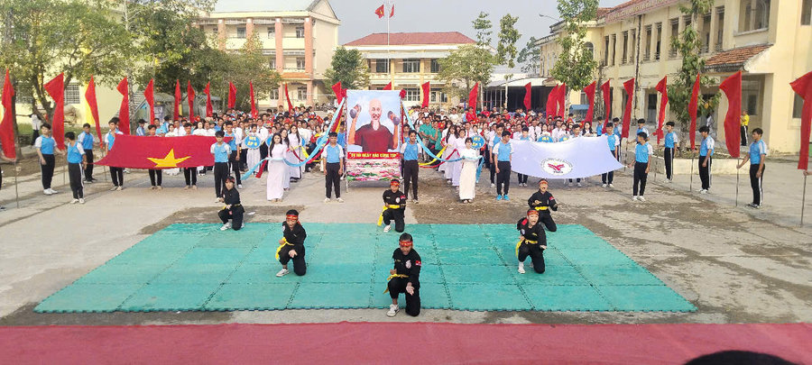 Ảnh: Chương trình đồng diễn lễ khai mạc Đại hội TDTT xã Vĩnh Hoà Hưng Bắc lần thứ VIII năm 2025.