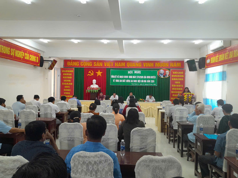 Ảnh: Quang cảnh hội nghị tổng kết kế hoạch số 69/KH-UBND ngày 27/3/2024 của UBND huyện về nâng cao chất lượng các danh hiệu văn hóa năm 2024 tại xã điểm chỉ đạo của huyện – Vĩnh Phước A.